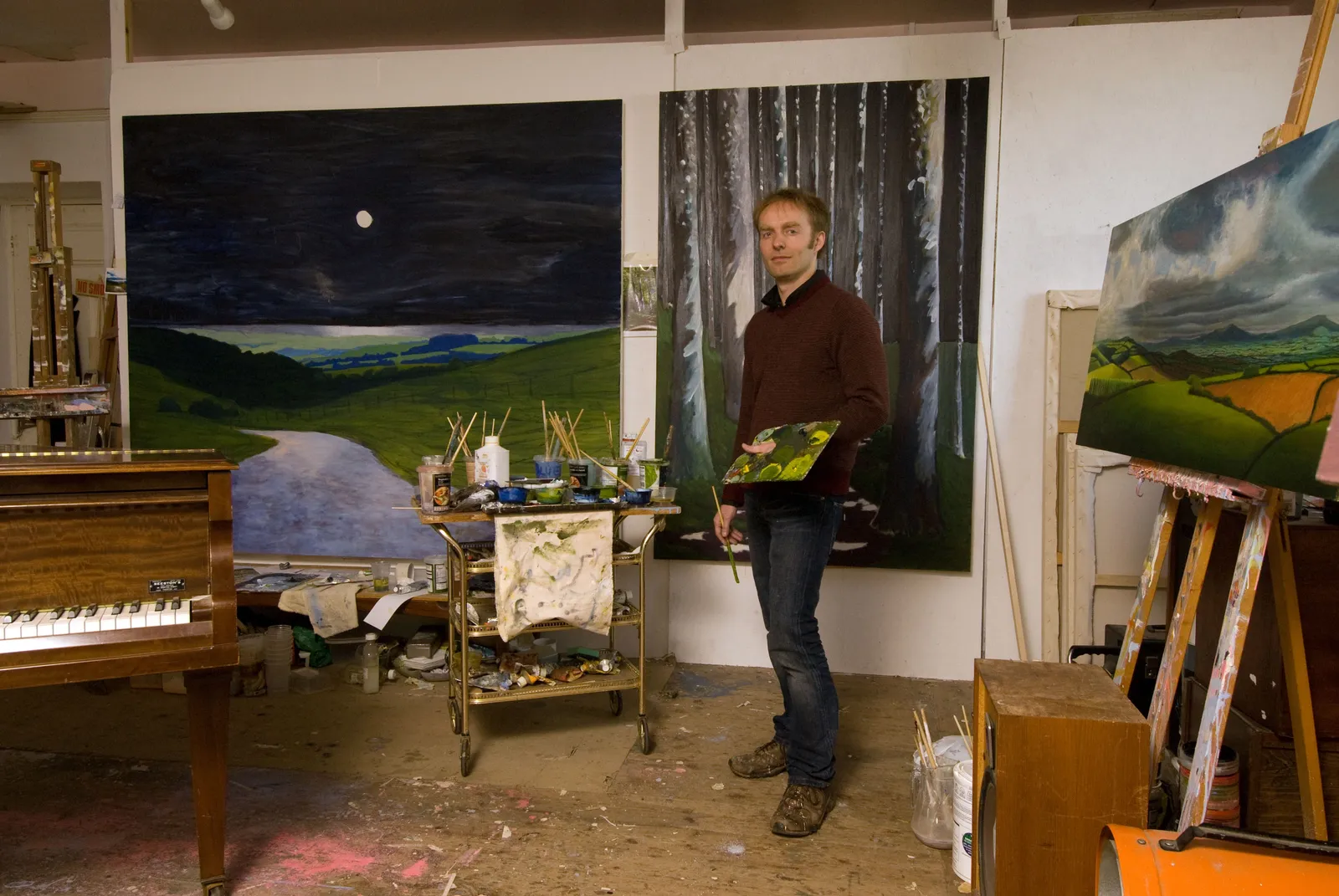 At first I was on my own on the first floor of an old rope-making building, with only a biker's bar next door. Then, gradually, more artists began to arrive, and within a few years we had a couple of dozen artists working throughout the building. I began to organise Open events, build a website for the studios, and began to get interest from the local press. I kept my studio there for twenty years, until a fire started one hot July day in 2018 on the top floor. Around a dozen artists lost their studios, and I moved first to a studio in the village of Bradpole, before finding my current studio at 11 Downes Street, in central Bridport.