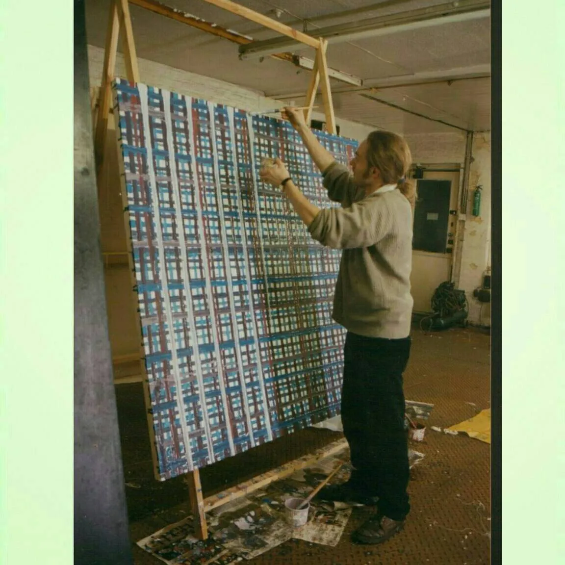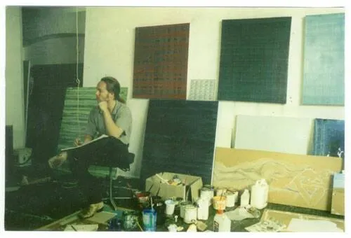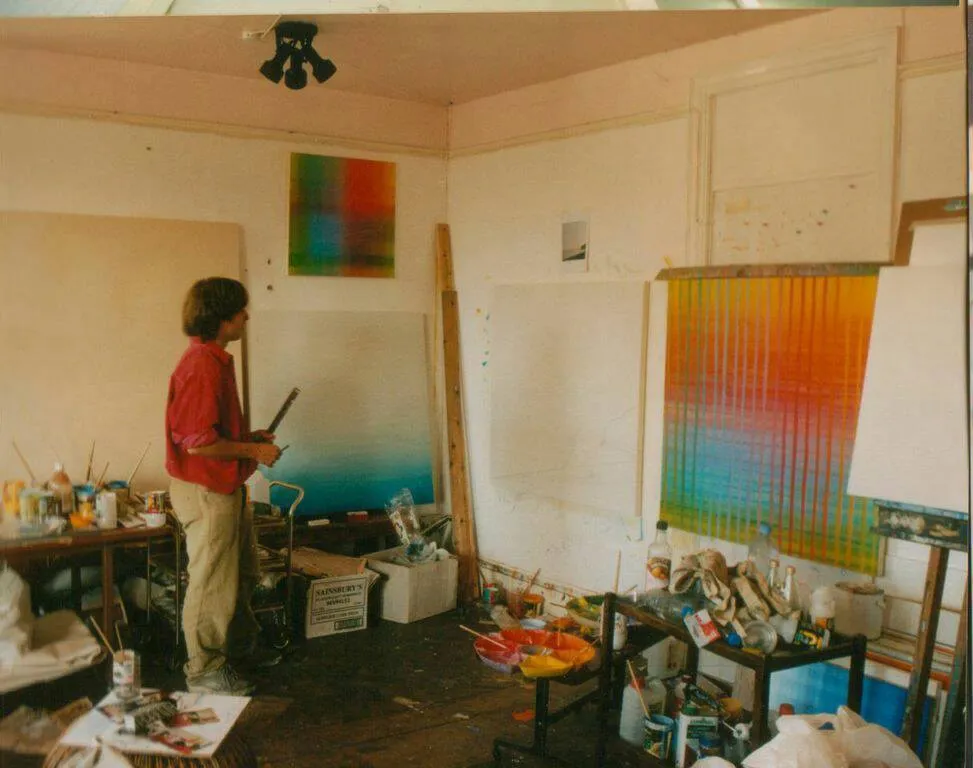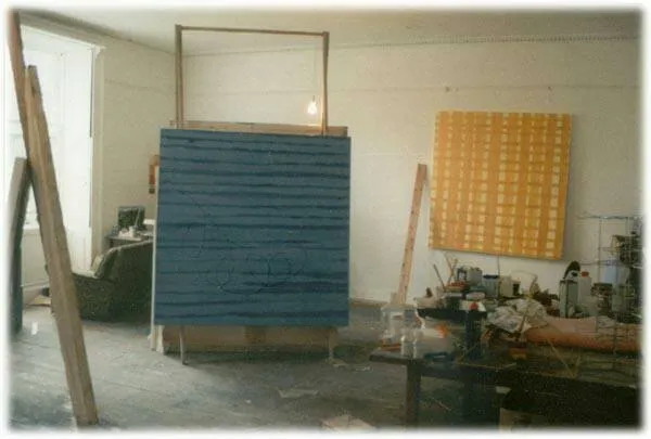 Then, a huge change occured in my work. This followed from several visits to the exhibition Gerhard Richter, "Painting in the 90's" exhibition at Anthony D'Offay Gallery in 1995. These uncompromising absctract paintings seemed to open up entirely new options in how I could use paint, colour, and surface, utilising my own form of 'process' painting. I thus began to develop my own language of Abstract painting, which I would continue for five years.