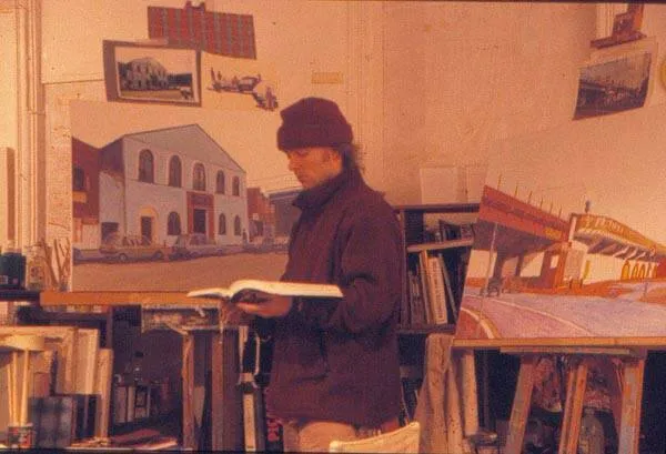 My enthusiasm for Abstract painting had begun to diminish almost as soon as I left London, and thus I began to explore other styles of painting, starting with a series of Urban Landscapes of familiar places in London. I then worked on a series of Petrol Station paintings, before settling on a series of paintings of the Cafe Royal, a run-down old greasy spoon cafe that I passed every day on the 5-minute cycle-ride to my studios.